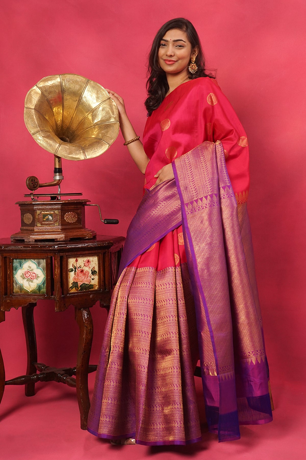 Majenta and purple with zari skirt border silk saree
