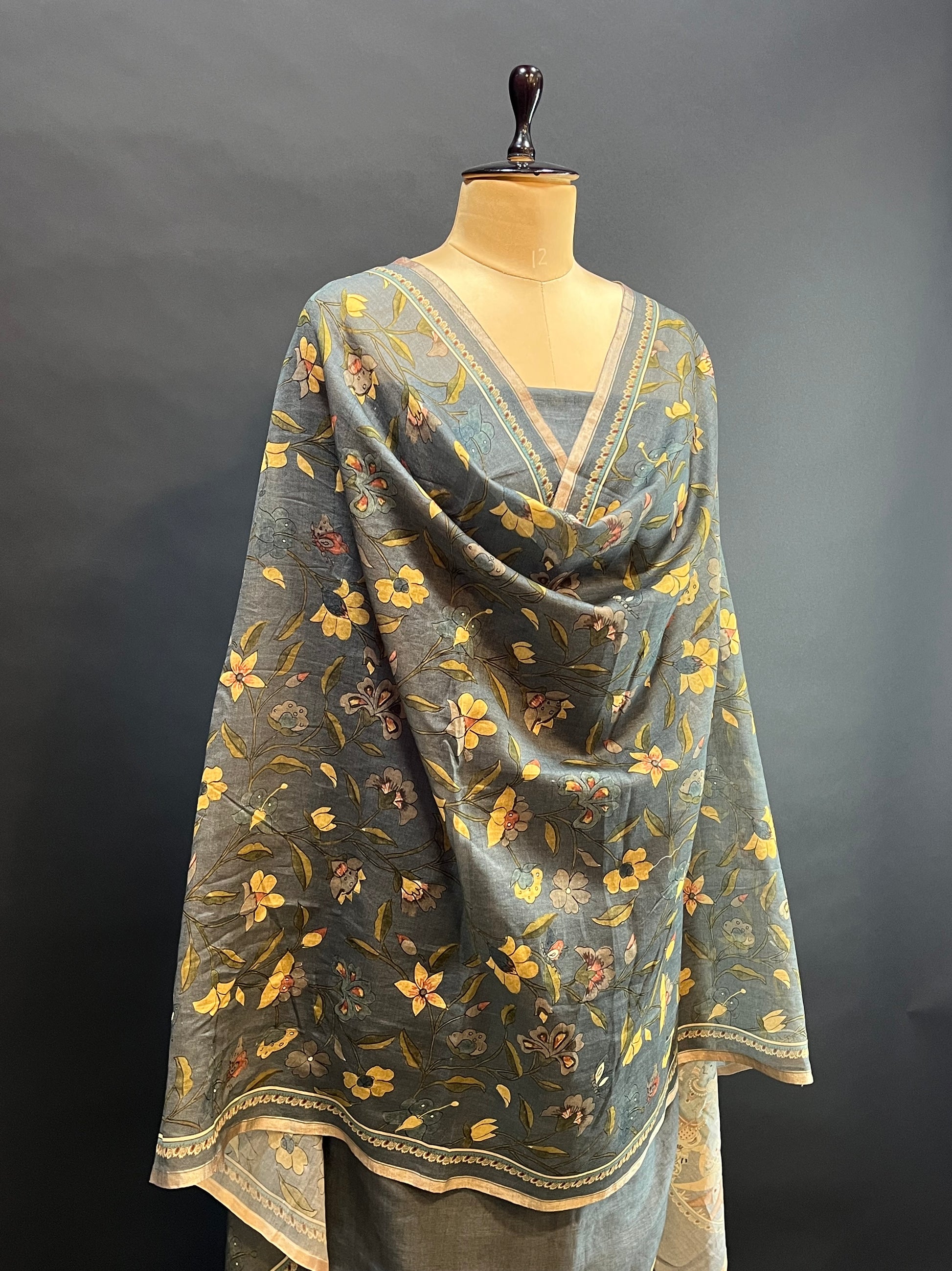 Soft Tussar Silk Figurative Digital Printed Un Stiched Suit